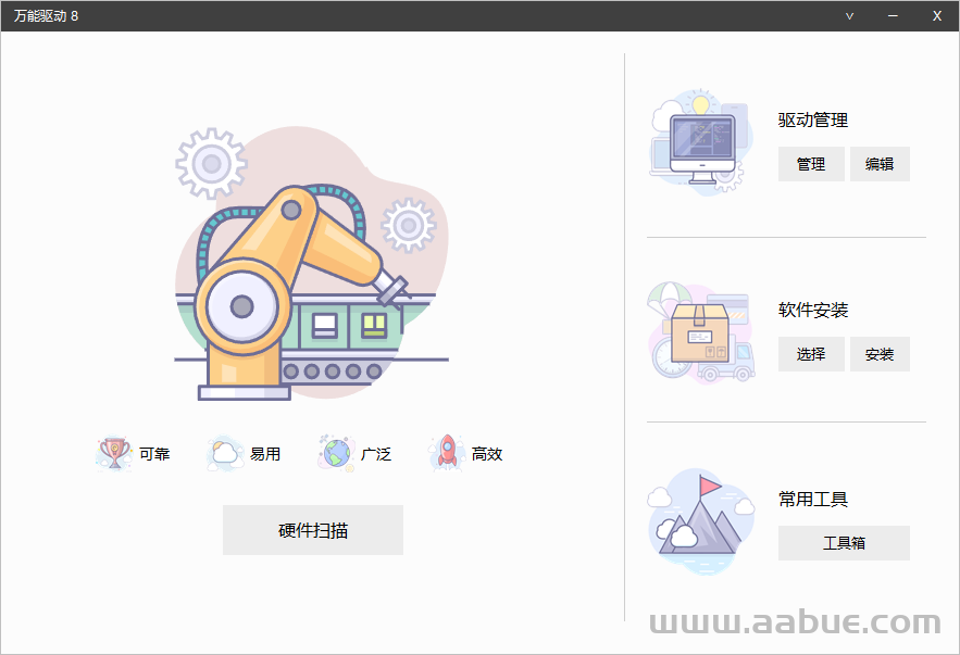 万能驱动7自2017年发布至今已6年有余,今天将画上最终版的句号,继任者万能驱动8已蓄势待发(VIP抢先体验)。相较万能驱动7,万能驱动8使用了全新的设计理念,硬件检索、驱动安装等方面皆有新技术加持,驱动库、软件库可全面自定义。