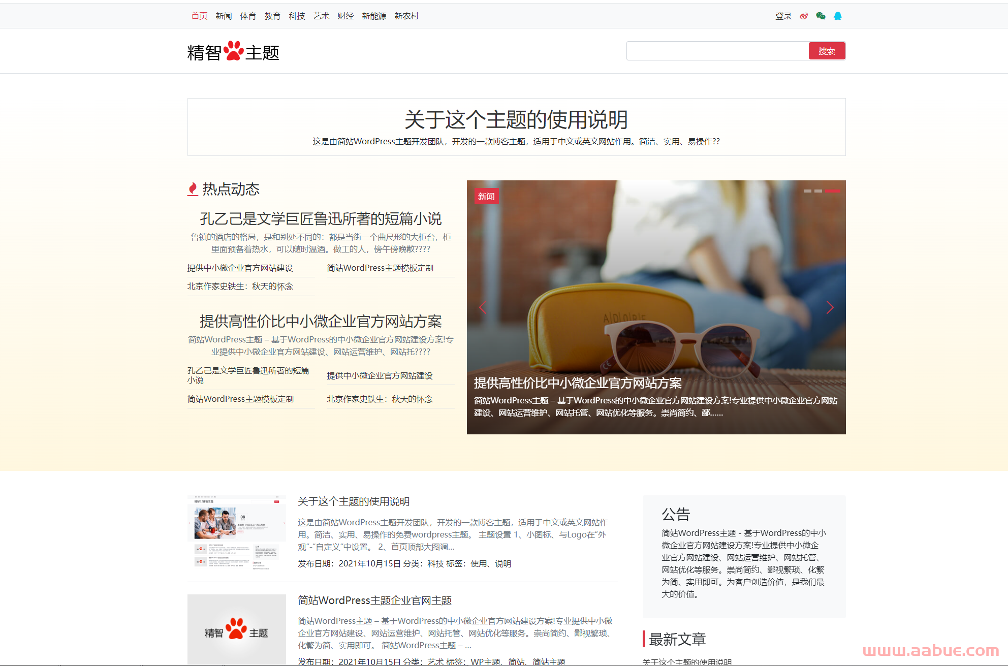 2、首页顶部大图调用的是“置顶”的文章。如果后台置顶了内容,就显示最新三个置顶的内容。如果后台没有置顶任何内容,就显示最新发布的内容。